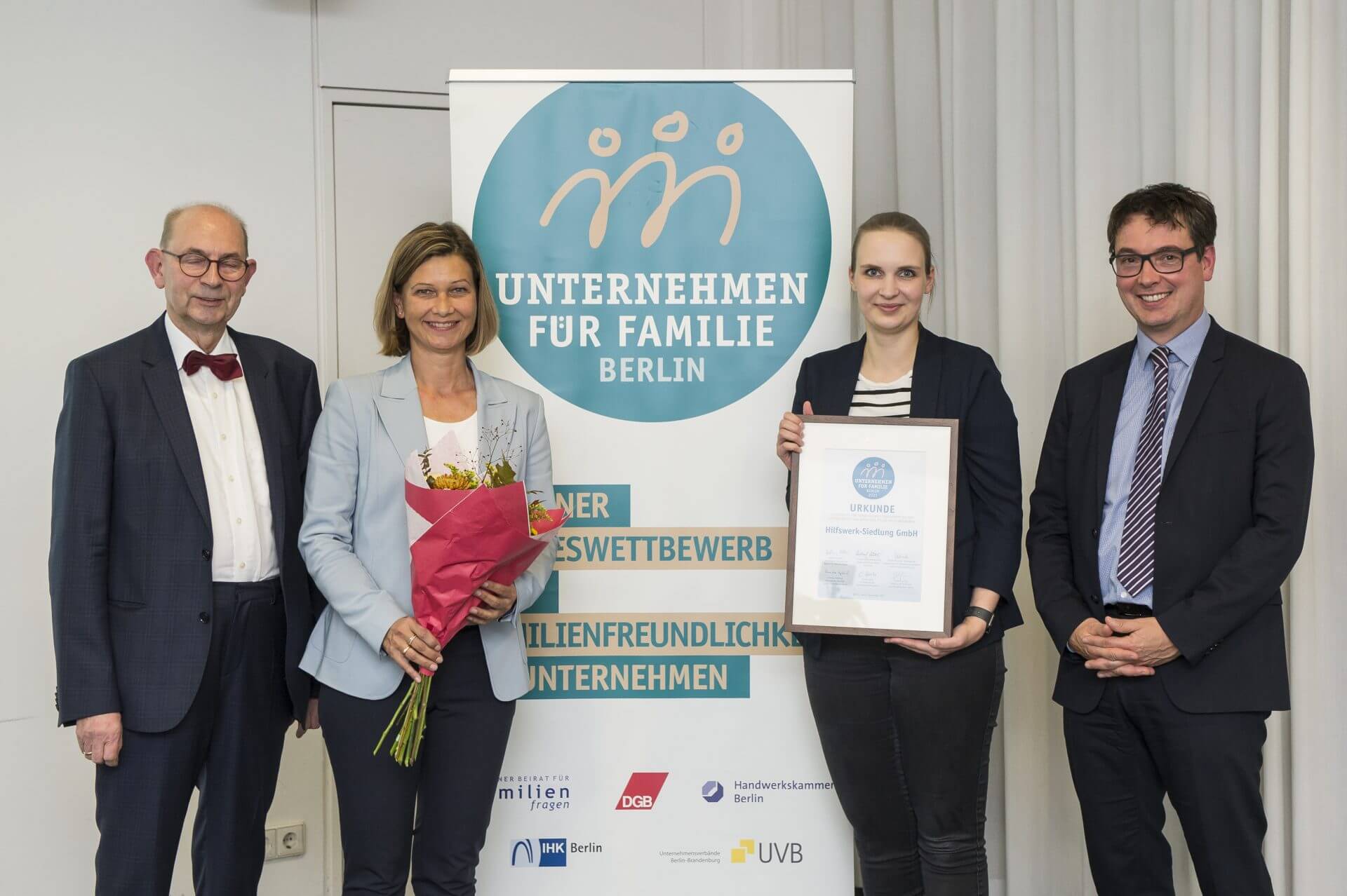 Am 02. November 2021 wurde der Sonderpreis an die Hilfswerk-Siedlung GmbH in einer feierlichen Preisverleihung überreicht. „Mit sehr viel Stolz und Freude haben wir den Sonderpreis entgegengenommen. Es ist etwas ganz Besonderes, wenn man einen Preis erhält und von einer Jury als familienfreundlichstes Unternehmen ausgezeichnet wird. Der Preis ist eine Belohnung für unsere tägliche und familienfreundliche Arbeit, die wir auch in Zukunft weiterhin ausbauen möchten“, so Dorit Brauns, stellvertretende Geschäftsführerin der Hilfswerk-Siedlung GmbH.